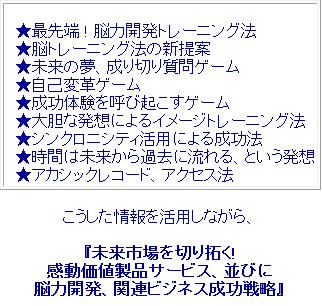 ⇒特典付き「未来を切り拓く ! 感動、脳力、ビジネス成功戦略」の詳細はこちら!