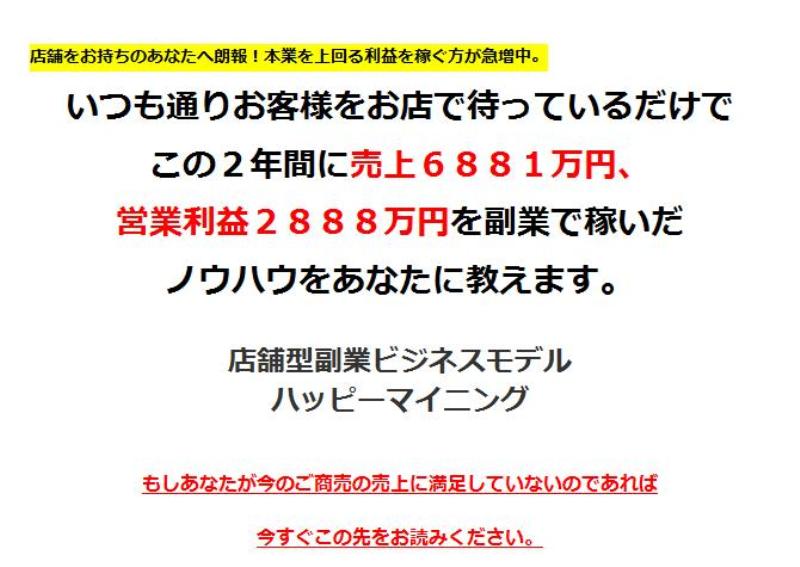 これをお読みのあなたは非常に運がいいのです。なぜならあなたは本業の片手間でできて、しかも本業を上回る稼ぎが可能な副業型ビジネスを知ることになるのです!ハッピーマイニング