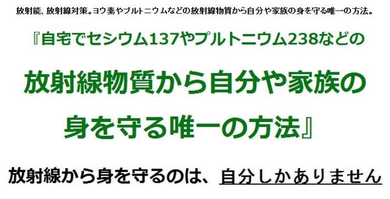 放射能、放射線対策。ヨウ素やプルトニウムなどの放射線物質から自分や家族の身を守る唯一の方法!自宅で放射線被ばくから身を守る唯一の方法