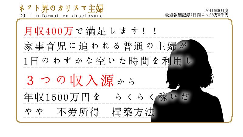 特別に通信教育でスキルを学んだとか、高学歴とか 住んでる地域とか 携帯があるないとか関係ありません。 そんな身近にいるような普通の主婦が こうやって 成功しています!月収400万で満足しないカリスマ主婦がツイに3つの収入源を公開〜家事育児に追われる主婦が1日のわずかな時間を利用し3つの収入源から年収1500万を稼ぐ!やや不労所得構築法
