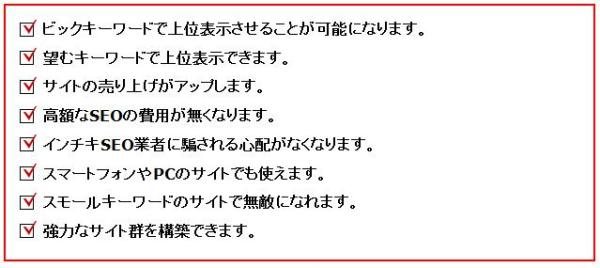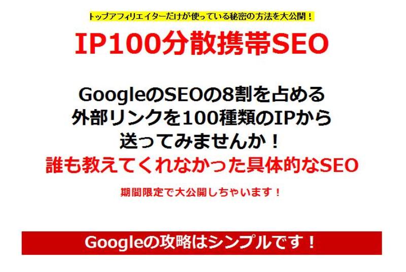 ポータルサイト・ビックキーワードでサイトを作って上位表示させるには、普通1年以上掛ります。自分のサイトを上位表示させるためには、ライバルを押しのける力技も必要です!IP100携帯SEO