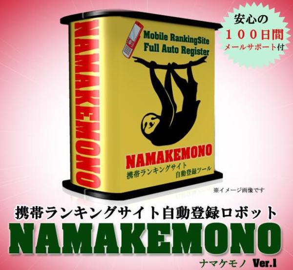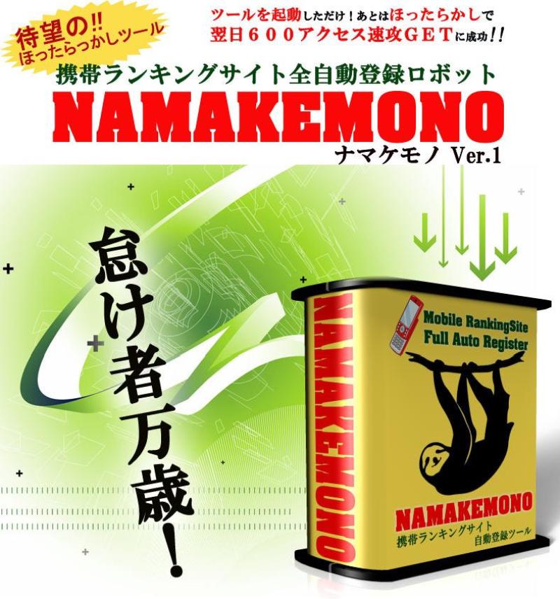 携帯アフィリエイトで稼ぐ為にもっとも重要なこと。それは携帯サイトのアクセスアップです。無駄な重労働は一切せずに、短時間でピンポイントで効果的な作業だけを行い、大きな結果を得ることができる!携帯ランキングサイト完全自動登録ロボット『NAMAKEMONO〜ナマケモノ』
